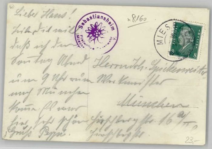 40209618 Miesbach Oberweissenbach Sebastiansheim x 1940 KatCode 11110009182125