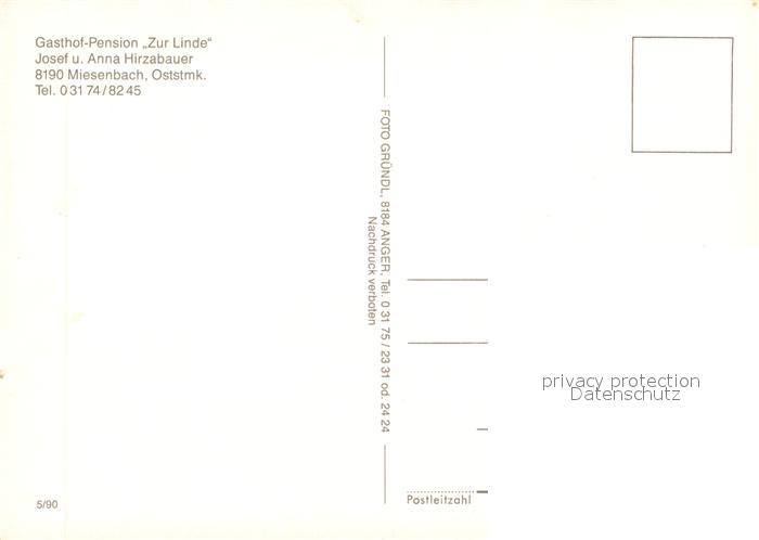 73070401 Miesenbach Birkfeld Gasthof Pension Zur Linde Hirzabauer postalisch nicht gelaufen Erhaltung siehe scans [WerneD78] KatCode: 11390224061728
