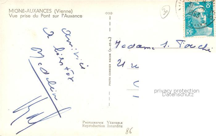 13485718 carte postale Migne-Auxances Vue prise du Pont sur l’Auxance postalisch gelaufen Erhaltung siehe scans [WerneD78] KatCode: 11170086386158