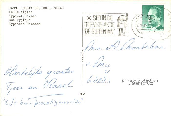 old postcard Mijas Calle Tipica postalisch gelaufen Erhaltung siehe scans