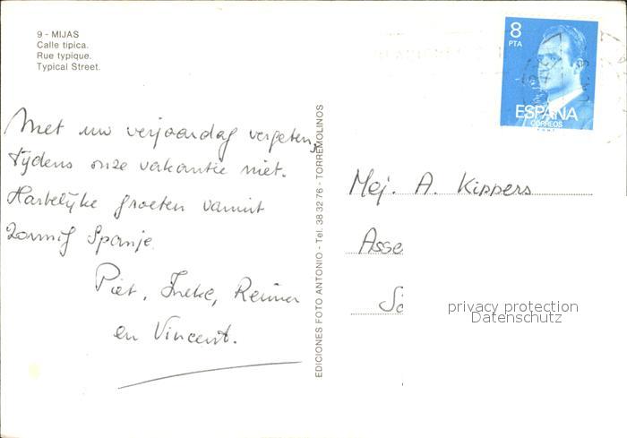 old postcard Mijas Calle tipica postalisch gelaufen Erhaltung siehe scans