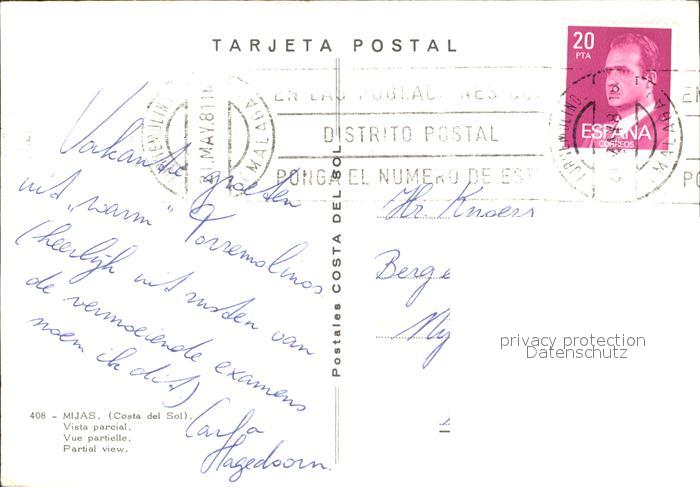 old postcard Mijas Partial view postalisch gelaufen Erhaltung siehe scans
