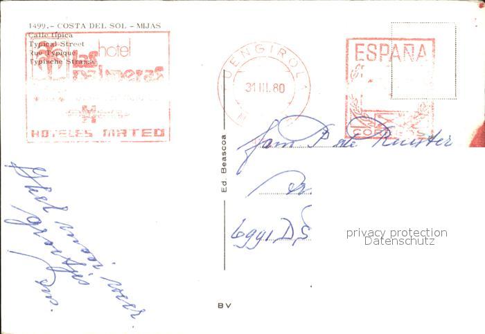 old postcard Mijas Spanische Gasse postalisch gelaufen Erhaltung siehe scans