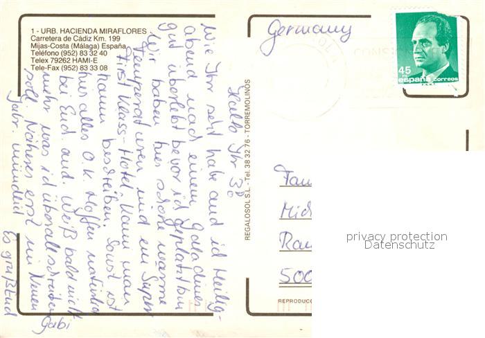 old postcard Mijas Urbanización Hacienda Miraflores Tennis Swimming Pool postalisch gelaufen Erhaltung siehe scans [FriedD77]