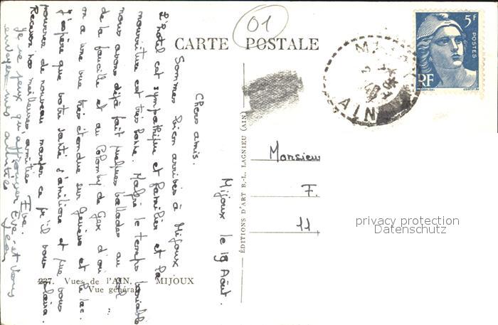 12555121 carte postale Mijoux Vue generale postalisch gelaufen Erhaltung siehe scans [FriedD77] KatCode: 11170001301247
