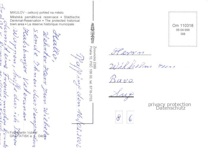 74137457 Mikulov Nikolsburg Suedmaehren Breclav CZ Staedt Denkmal Reservation Fliegeraufnahme postalisch nicht gelaufen Erhaltung siehe scans [WerneD78] KatCode: 11520