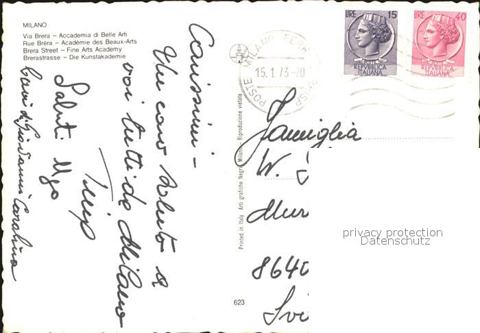 old postcard Milano Brerastrasse Kunstakademie postalisch gelaufen Erhaltung siehe scans