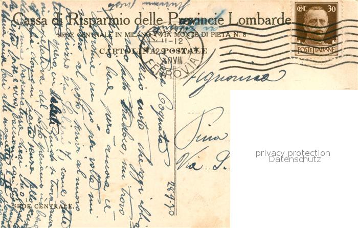 old postcard Milano Cassa di Risparmio delle Provincie Lombarde postalisch gelaufen Erhaltung siehe scans [FriedD77]