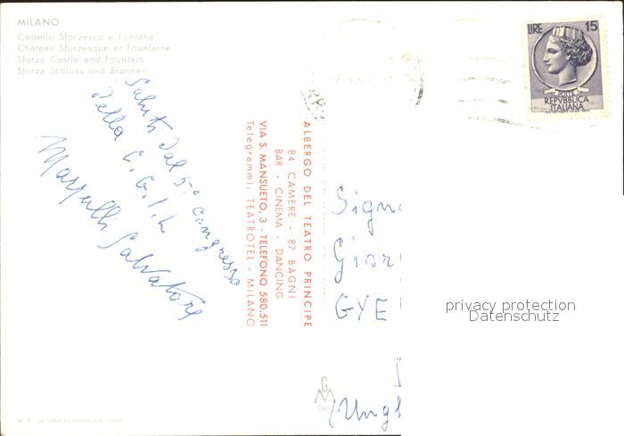 old postcard Milano Castello Sforzesco e Fontana Schloss Brunnen postalisch gelaufen Erhaltung siehe scans