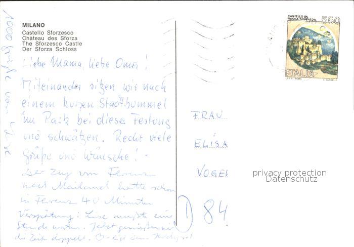 old postcard Milano Castello Sforzesco Schloss postalisch gelaufen Erhaltung siehe scans