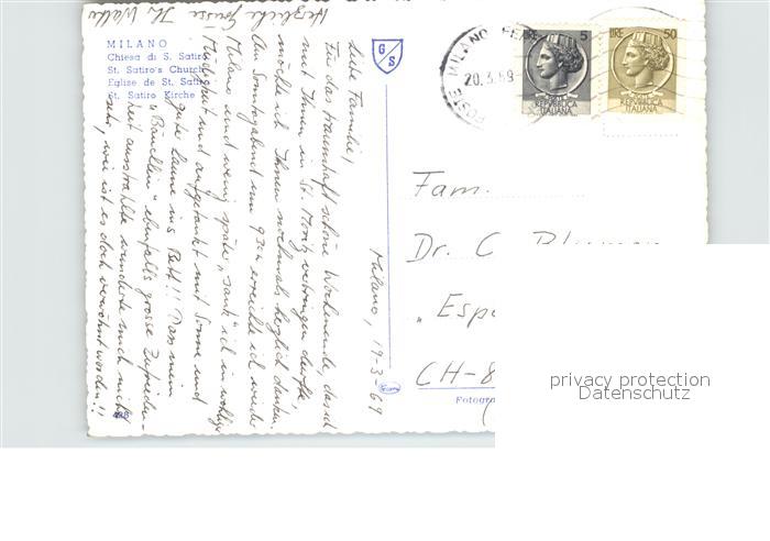 old postcard Milano Chiesa di San Satiro postalisch gelaufen Erhaltung siehe scans