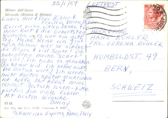 old postcard Milano Fliegeraufnahme postalisch gelaufen