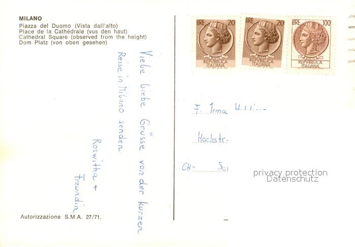 old postcard Milano Fliegeraufnahme Piazza del Duomo postalisch gelaufen Erhaltung siehe scans [LiesaD40]