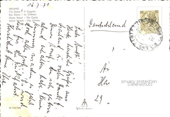old postcard Milano Fliegeraufnahme Schloss postalisch gelaufen Erhaltung siehe scans