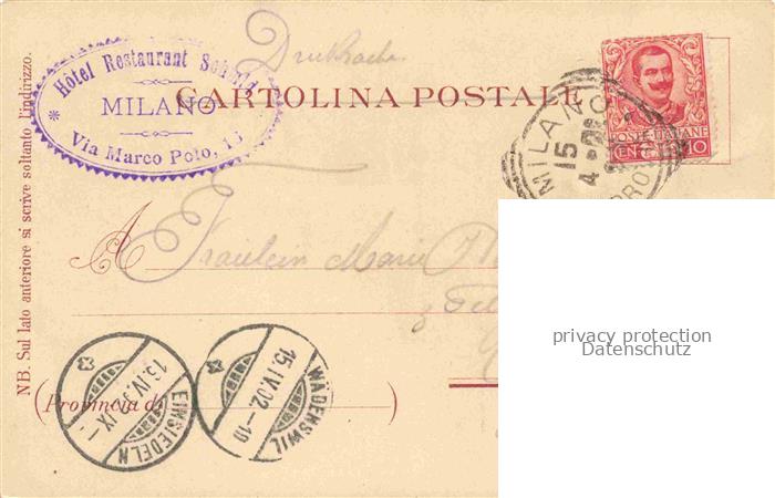 74059071 old postcard MILANO Mailand IT Giardini Pubblici Verziere Corso Vittorio Emanuele Viale degli Oppocastani Arena Kuenstlerkarte postalisch gelaufen Erhaltung siehe scans [FriedD77] KatCode: 11240