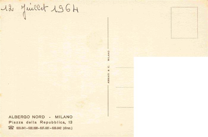 73972679 MILANO Mailand IT Hotel Nord Zeichnung Kuenstlerkarte postalisch nicht gelaufen Erhaltung siehe scans [FriedD77] KatCode: 11240
