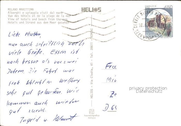old postcard Milano Marittima Alberghi e spiaggia visti dal mare Hotels Strand postalisch gelaufen Erhaltung siehe scans