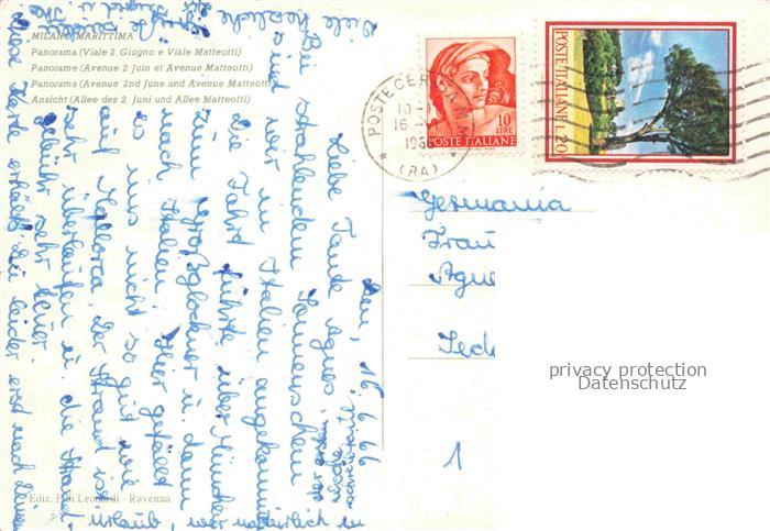 74076345 old postcard MILANO MARITTIMA Emilia-Romagna IT Panorama Viale 2 Giugno e Viale Matteotti veduta aerea postalisch gelaufen Fliegeraufnahme Erhaltung siehe scans [FriedD77] KatCode: 11240