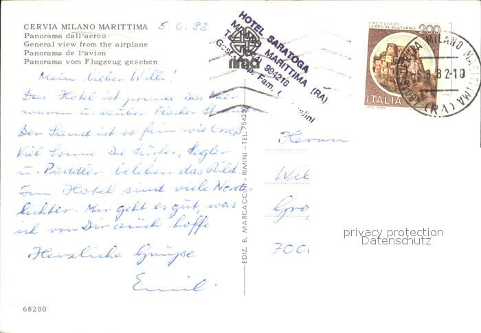 old postcard Milano Marittima Fliegeraufnahme postalisch gelaufen Erhaltung siehe scans