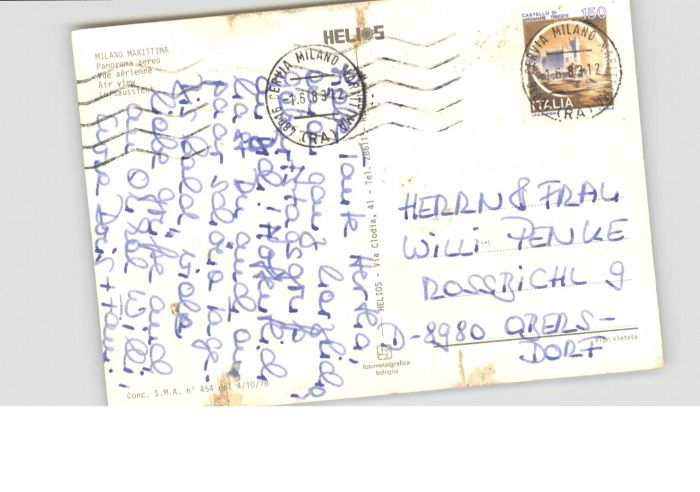 old postcard Milano Marittima Fliegeraufnahme postalisch gelaufen