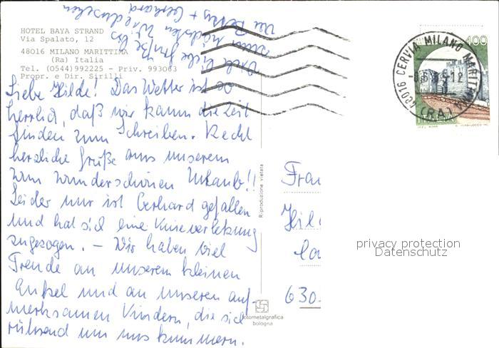 old postcard Milano Marittima Hotel Baya Strand postalisch gelaufen Erhaltung siehe scans