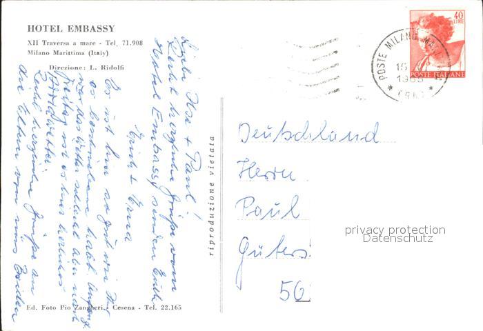 old postcard Milano Marittima Hotel Embassy postalisch gelaufen Erhaltung siehe scans