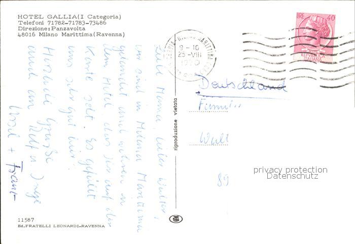 old postcard Milano Marittima Hotel Gallia postalisch gelaufen Erhaltung siehe scans