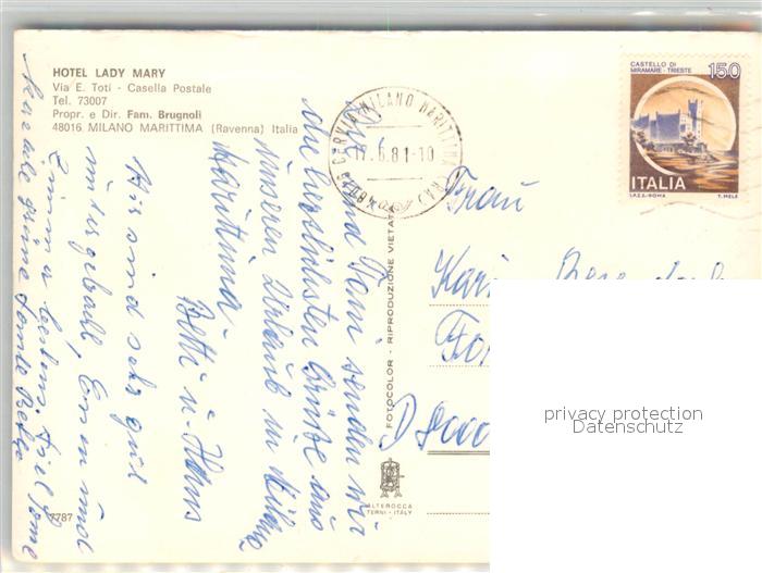 old postcard Milano Marittima Hotel Lady Mary postalisch gelaufen Erhaltung siehe scans [PaolaD17]