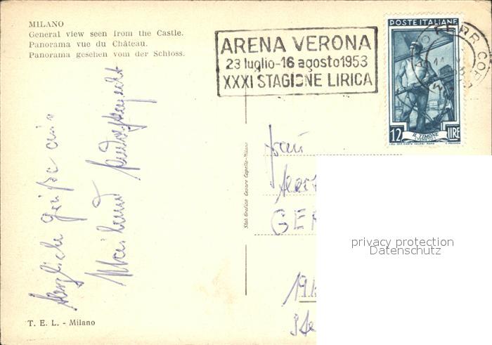 old postcard Milano Panorama dal Castello Sforzesco postalisch gelaufen Erhaltung siehe scans