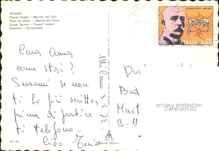 old postcard Milano Piazza Duomo Mercato dei Fiori Monumento postalisch gelaufen Erhaltung siehe scans