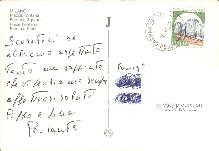 old postcard Milano Piazza Fontana postalisch gelaufen Erhaltung siehe scans