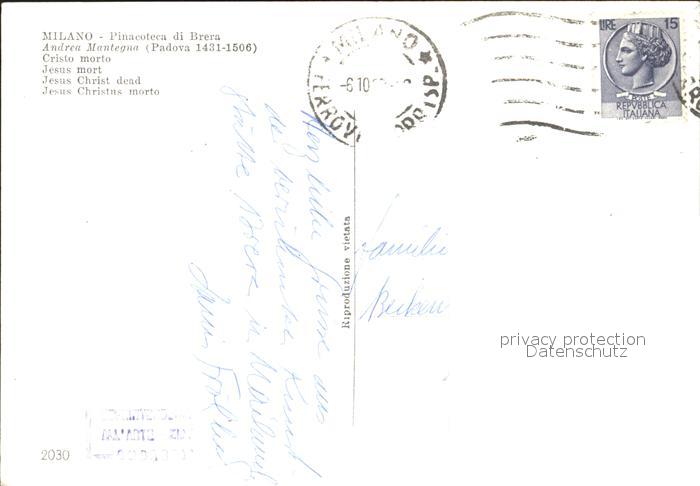 old postcard Milano Pinacoteca di Brera Cristo morto postalisch gelaufen Erhaltung siehe scans