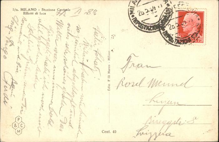 old postcard Milano Stazione Centrale postalisch gelaufen