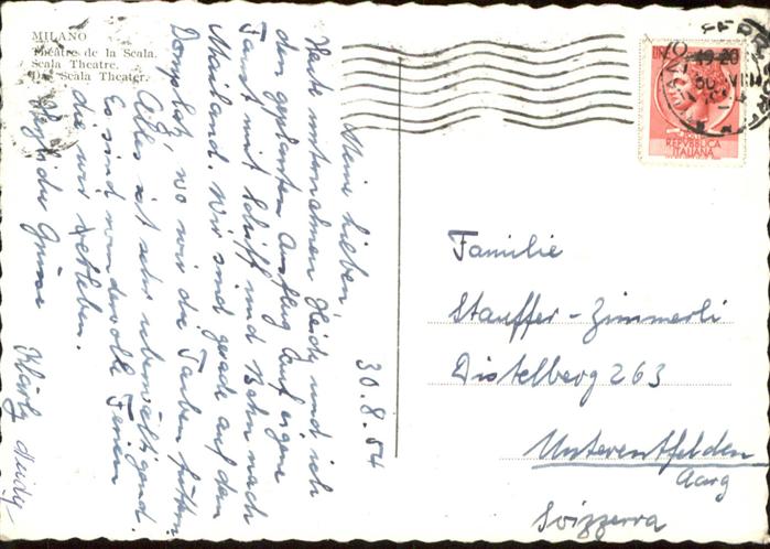 old postcard Milano Teatro Alla Scala postalisch gelaufen