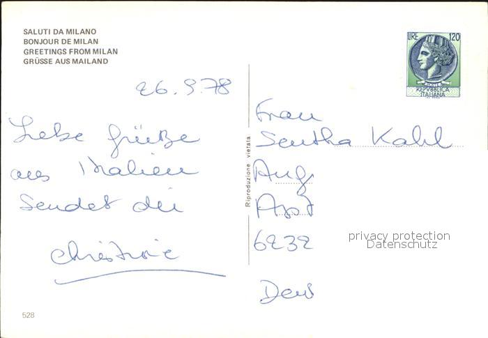 old postcard Milano Teilansicht Dom Triumphbogen postalisch gelaufen Erhaltung siehe scans [WerneD78]