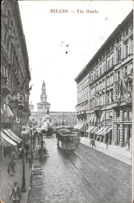 alte Postkarte Milano Via Dante Strassenbahn postalisch gelaufen