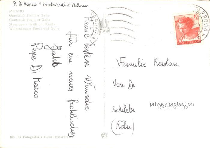 old postcard Milano Wolkenkratzer Pirelli und Galfa postalisch gelaufen Erhaltung siehe scans [LiesaD40]