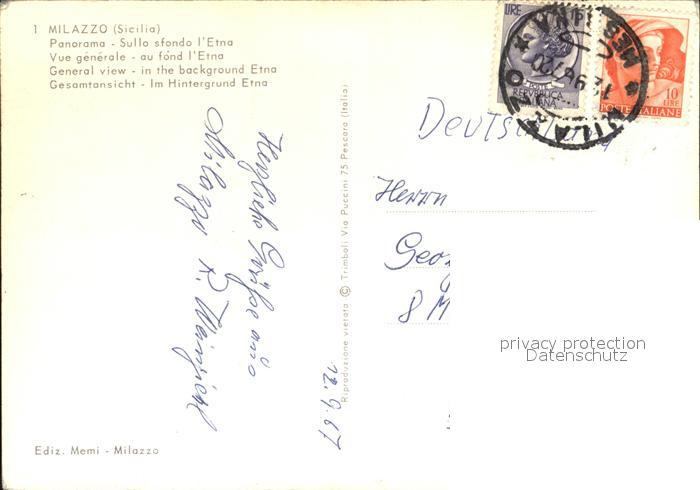old postcard Milazzo Sullo sfondo L Etna postalisch gelaufen Erhaltung siehe scans