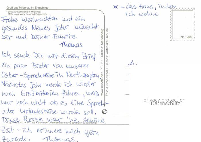 72646039 Mildenau Ortsansicht mit Kirche im Winter postalisch nicht gelaufen Erhaltung siehe scans [FriedD77] KatCode: 11110014171210