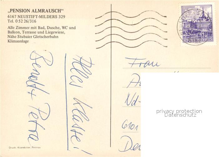 73516722 alte Postkarte Milders Pension Almrausch Winter postalisch gelaufen Erhaltung siehe scans [KathaD81] KatCode: 11390332070334