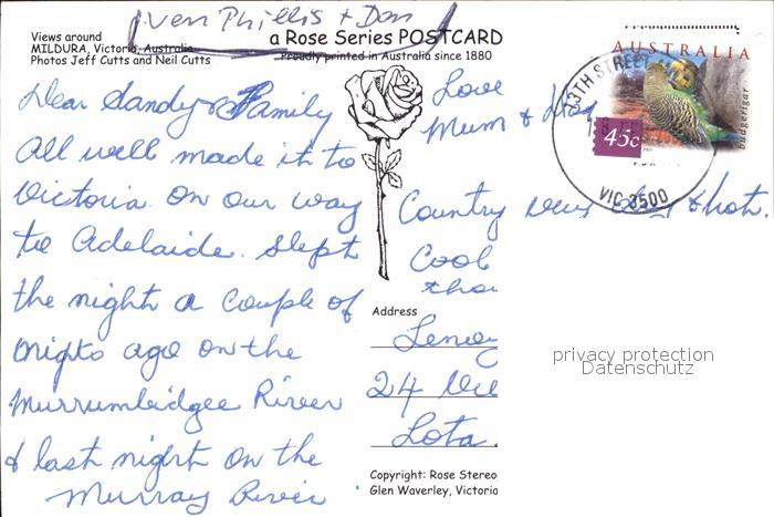 old postcard Mildura Views around the city Art Centre Chaffey Bridge PV Rothbury PS Melbourne Raddampfer postalisch gelaufen Erhaltung siehe scans