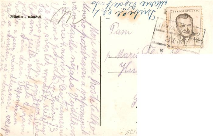 73959464 old postcard Miletin CZ Namesti Stadtplatz postalisch gelaufen Erhaltung siehe scans [FriedD77] KatCode: 11520