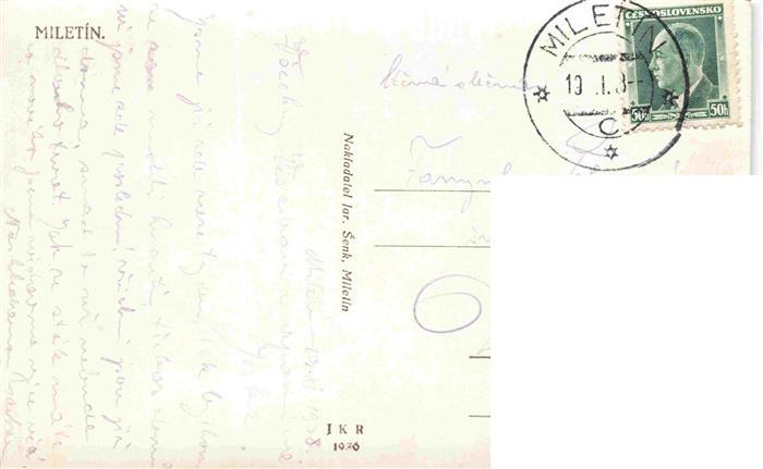 73974015 old postcard Miletin CZ Panorama postalisch gelaufen Erhaltung siehe scans [WerneD78] KatCode: 11520