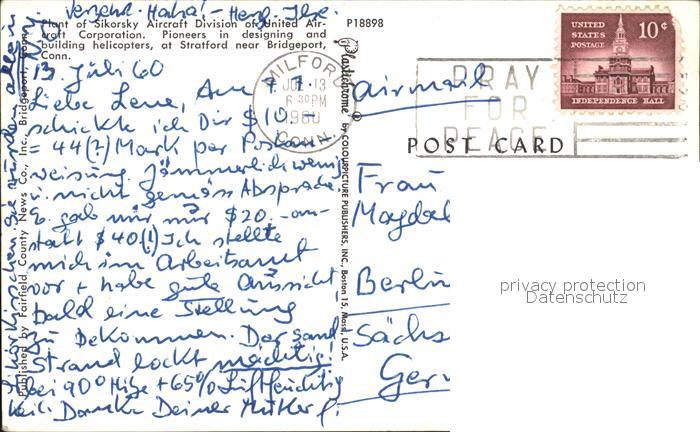 72415831 old postcard Milford Connecticut Fliegeraufnahme Aircraft Division postalisch gelaufen Erhaltung siehe scans KatCode: 14140070000000