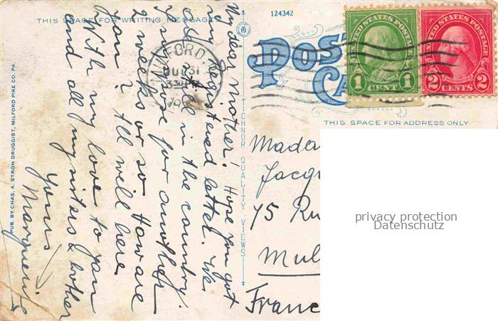 74012549 old postcard Milford Delaware Hotel Schanno and Indian Point House view down the Delaware from the cliffs postalisch gelaufen Fliegeraufnahme Erhaltung siehe scans [FriedD77] KatCode: 14140080000000