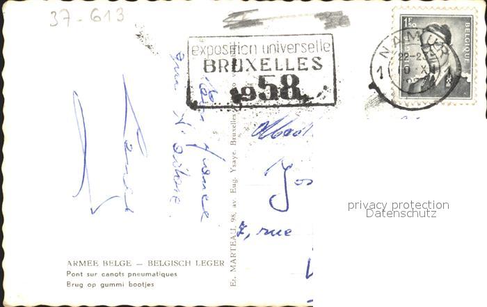 alte Postkarte Militaria Belgien Armee Belge Pont sur canots pneumatiques postalisch gelaufen Erhaltung siehe scans