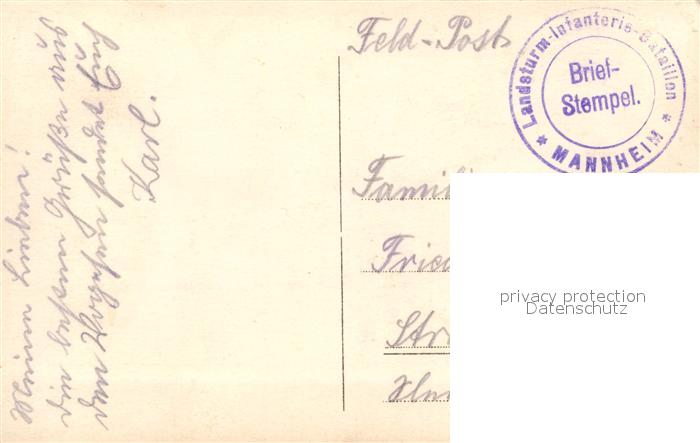33337524 alte Postkarte Militaria Deutschland WK1 Landsturm LIR Mannheim postalisch gelaufen Feldpost Erhaltung siehe scans [Chrisger] KatCode: 22300540540540