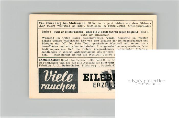 73578016 Militaria Deutschland WK2 Von N?rnberg bis Stalingrad Ruhe an allen Fronten Oberrhein Eilebrecht-Zigaretten KatCode 22300570570570