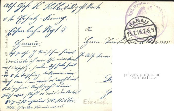 32504001 alte Postkarte Militaria Eisenbahn eisenbahn Regiment 3 Hanau WK1 postalisch gelaufen Feldpost Erhaltung siehe scans KatCode: 22300080080080