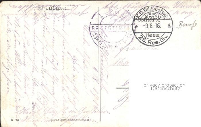 alte Postkarte Militaria Feldkueche Field Kitchen Cuisne Mobile Cucina da Campo Feldschlaechterei Weltkrieg 1 postalisch gelaufen Feldpost Erhaltung siehe scans